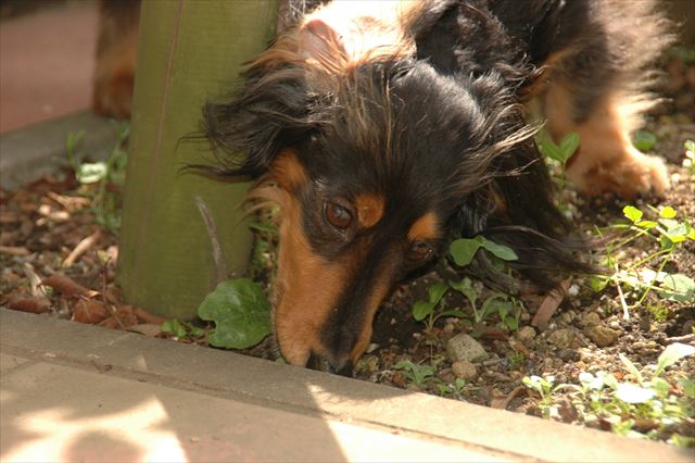 犬。我が家の庭にて