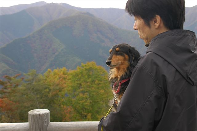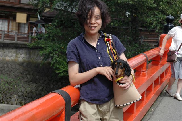 犬と一緒。飛騨高山にて。